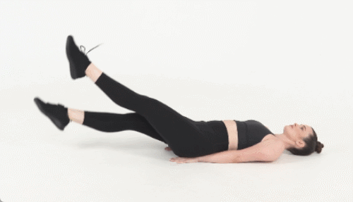 매트에 누워서 손을 골반 아래에 두어 허리를 지지합니다. 다리를 공중으로 들어 올려 천장을 향하게 합니다. 왼발을 내리면서 동시에 오른발을 들어 올립니다. 이 동작을 번갈아 빠르게 반복합니다.