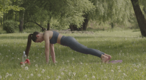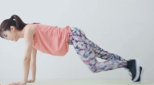 매트에 플랭크 자세로 엎드리세요. 오른쪽 무릎을 가슴 쪽으로 당깁니다. 가슴에 무릎이 가까워지면, 다시 플랭크 자세로 돌아갑니다. 왼쪽 무릎도 같은 방식으로 가슴 쪽으로 당깁니다. 이 동작을 번갈아 반복합니다.